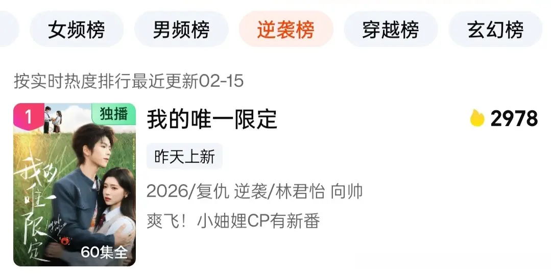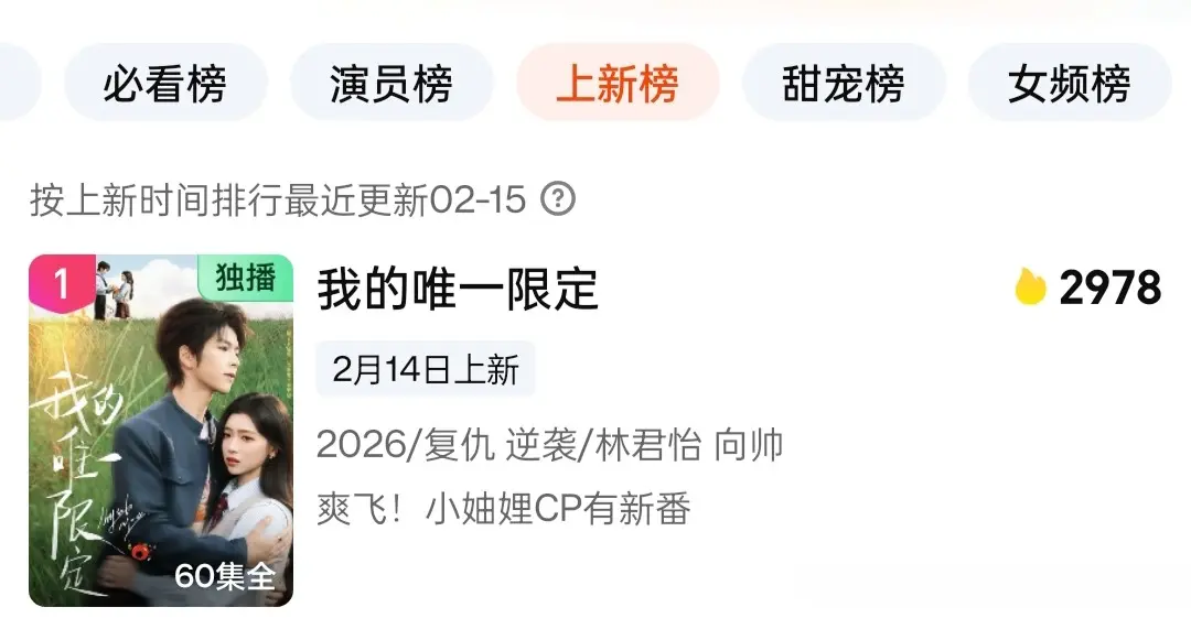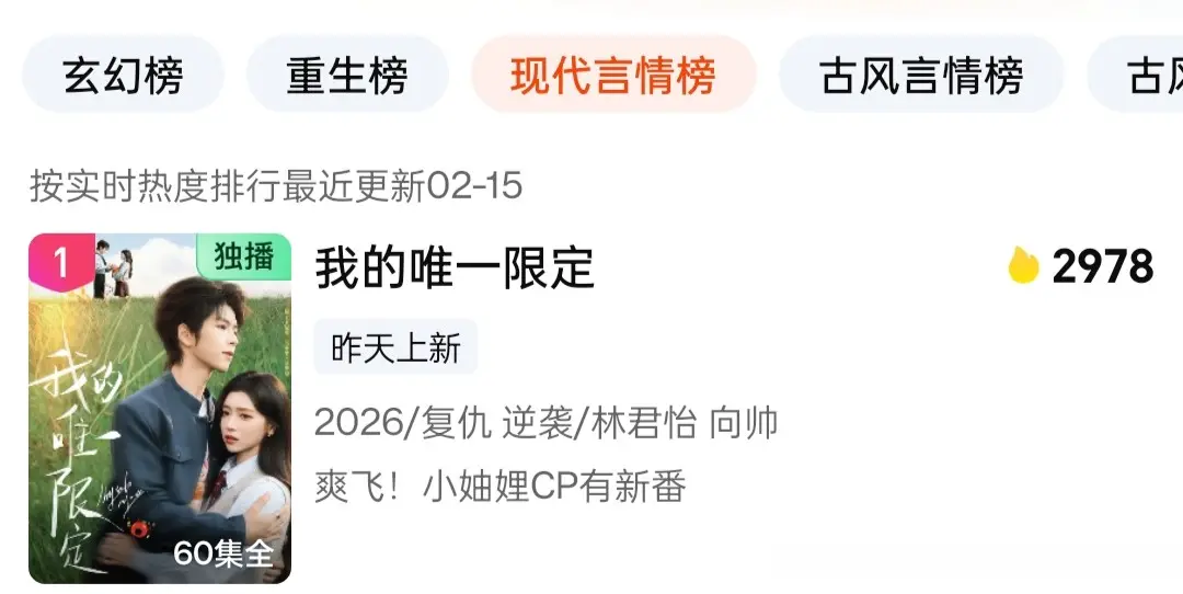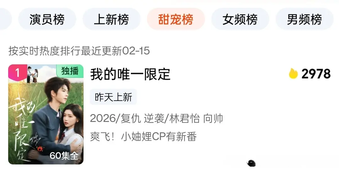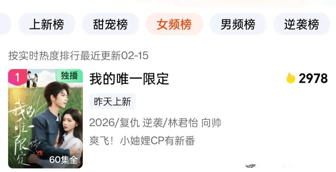 总的来说,《我的独一法例》以穿书复仇的新颖设定、林君怡向帅的领略二搭、甜爽双杀的极致节拍,成为2026情东说念主节档最亮眼的短剧黑马。它告诉咱们:哪怕拿的是淘气女配脚本,也要活成大女主的东说念主生。