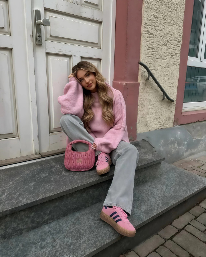 许多女东说念主对粉色有诬陷,以为过了三十岁就不可碰粉色了,但事实上粉色分许多种,那种荧光的、裕如度极高的糖果粉确乎挑东说念主,可你若是选那种带点灰调的樱花粉、裸粉,搭配浅灰色的西装或者真挚衫,两个神采的色温相等接近,组合在一说念实足莫得“硬装嫩”的嗅觉。