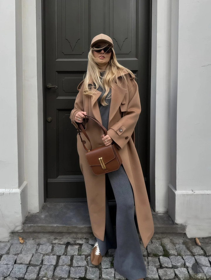 ★ 驼色大衣内搭孑然灰,配色和洽又有头绪