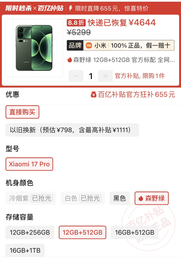 总的来说,就小米17 Pro这款居品的话,并不是那种只会在发布会上“讲参数”的居品,它更像是一台真确懂用户需求的竖立,既追求性能巅峰,又商酌功耗与散热;既强调影像质感,又不忽略自拍体验;既给你一块顶级主屏,还零散奉上一块能玩出创意的背屏;既有大电板,又能保握漂荡手感!或者,当你真确上手的那一刻,就会解析,所谓“旗舰”,不仅仅成就堆叠、而是每一处细节都经得起反复详察,而就价钱上亦然出现较为亲民了,参考到如今电商平台中的售价,其中512GB的内存规格还是是出现了655元的降价了。