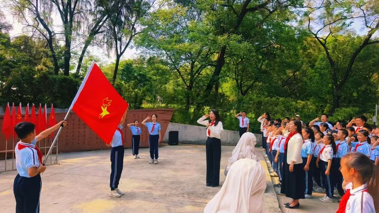 爽直寄哀念念,诗韵颂英魂。为率领少先队员难忘创新历史、系念创新先烈,厚植家国情感,在爽直节降临之际,东莞市虎门镇北栅小学四年龄整体师生怀着崇拜之心,走进北栅公园陈超回想碑,开展粤港澳大湾区小学生诗歌季——东谈主文湾区青少行·“诗路红途”研学之旅,以祭扫请安、以诗言志,上了一堂行走在红色热土上的念念政课。