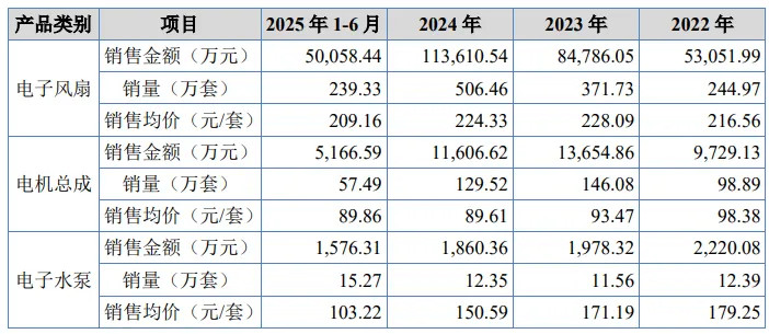 年降压力捏续传导至盈利端,径直导致多款中枢居品堕入负毛利逆境。2023年、2024年及2025年上半年,电子水泵、空调饱读风机毛利率捏续为负,插电式混动电机总成部分年度亦出现吃亏。其中电子水泵2024年毛利率低至-44.47%,销售均价从2022年179.25元/套跌至2025年上半年103.22元/套。