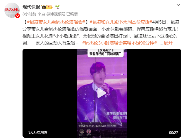 4月5日,昆凌共享带犬子看周杰伦演唱会的温馨画面,小家伙戴着墨镜、挥舞应援棒超有范儿!视频里犬子化身“小小后盾会”,尊龙国际为爸爸的首场上演打call,昆凌还纪录下这暖心时分,一家东说念主的互动超有爱!