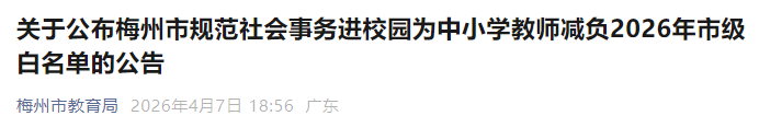 最新音信!梅州市表率社会事务进校园为中小学教师减负2026年市级白名单公布啦!