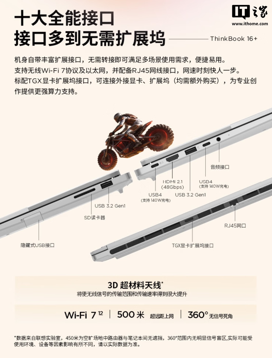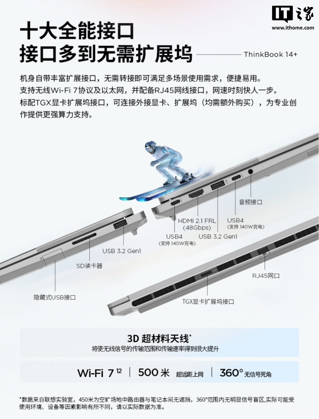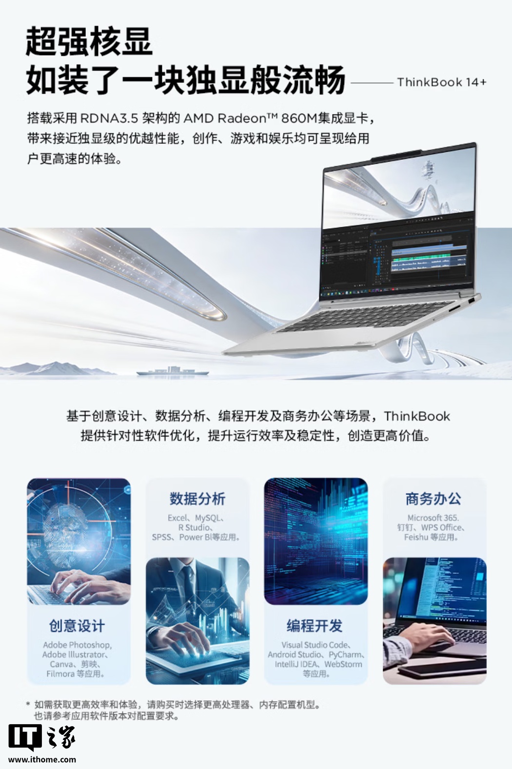 Think Book 14+ 2026 锐龙版:这款札记本搭载的管制器弃取 8 中枢 16 线程贪图,加快频率至高可达 5.1GHz,最高性能开释 80W,NPU AI 算力可达 50 TOPS,内置 Radeon 860M 集成显卡,得志普通办公以及轻度游戏需求,A/C/D 面弃取金属铝材质,A 面还带有两种喷砂工艺,补助 180° 开合。