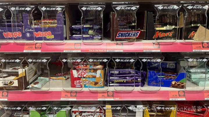 为减少盗窃,Tesco、Co-op和 Sainsbury's等英国大型超市一经把部分巧克力放进透明防盗盒,顾主需要请伴计大开才能购买。