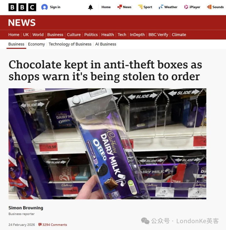 ●英国超市将巧克力锁进防盗盒,应酬巧克力盗窃案频发