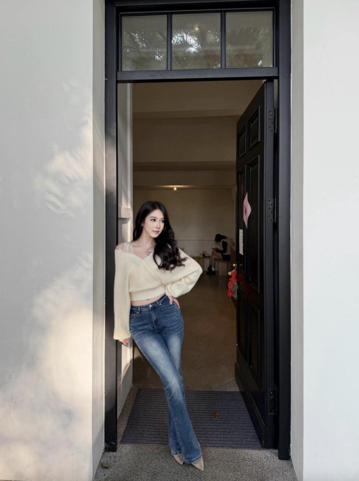 尊龙国际官网 露肩毛衣 + 因循牛仔 + 尖头鞋, 和蔼又飒, 这气质谁顶得住啊