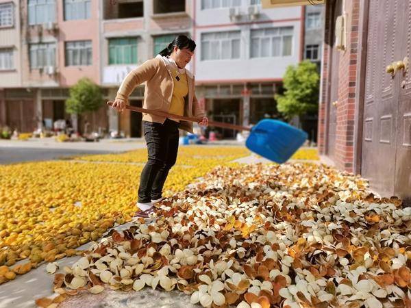 农户正在曝晒陈皮。浦北县委宣传部供图