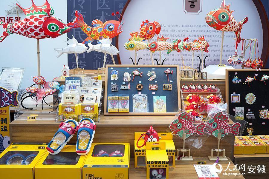 围绕鱼灯修复的多样文创居品。东说念主民网记者 王锐摄