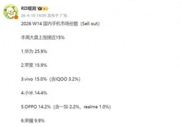 W13这个周,苹果还以隐微的上风蝉联第一,尊龙国际官网一周之后,苹果跌到15.9%,华为涨到了25.9%,苹果还好,毕竟从18%跌下来的,并不是很疼,它莫得喊。