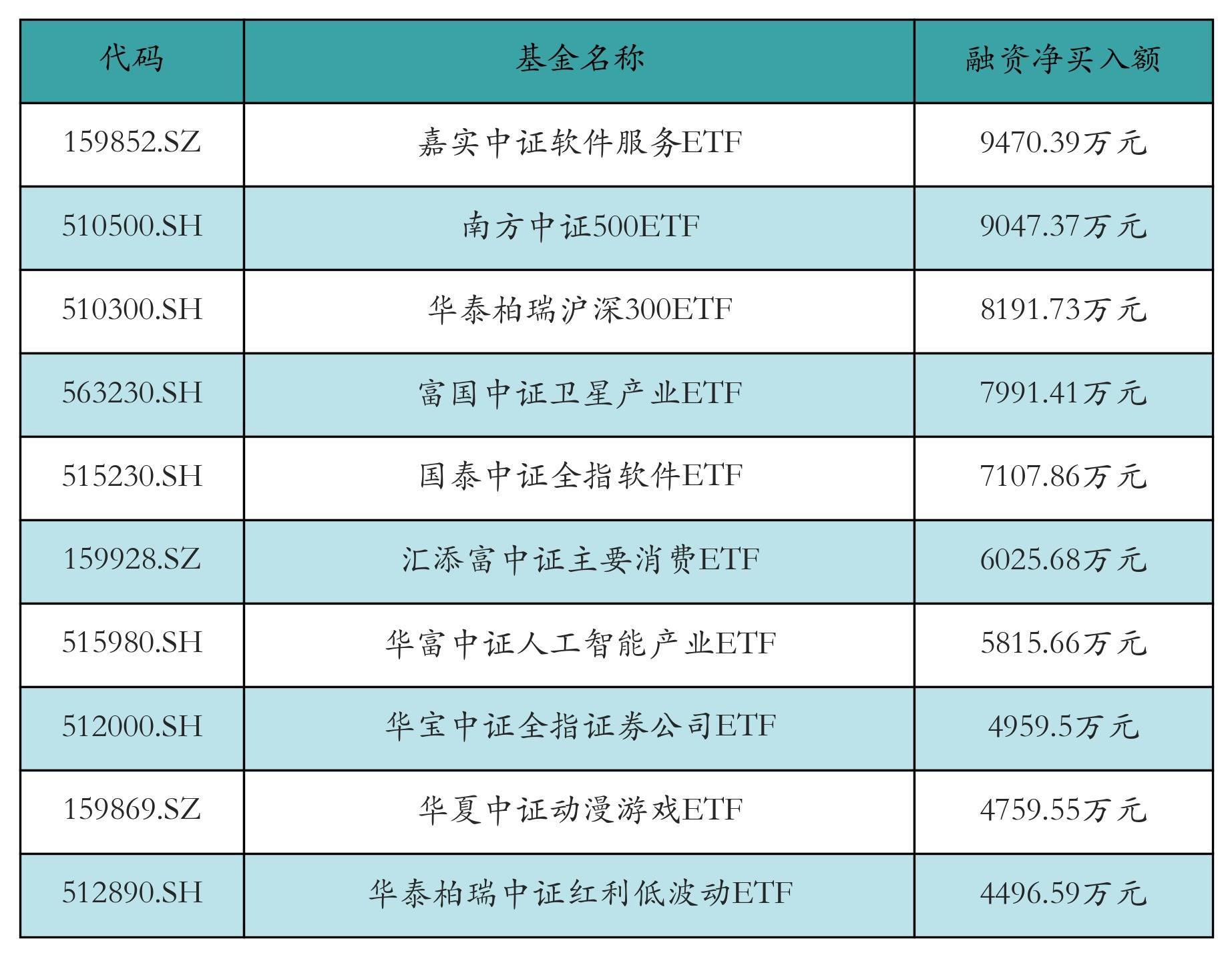 {jz:field.toptypename/}1月14日ETF融资净买入额前三位辞别为:嘉实中证软件工作ETF(9470.39万元)、南边中证500ETF(9047.37万元)和华泰柏瑞沪深300ETF(8191.73万元),前10具体见下表:
