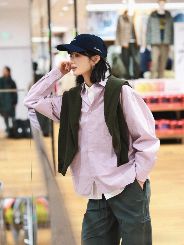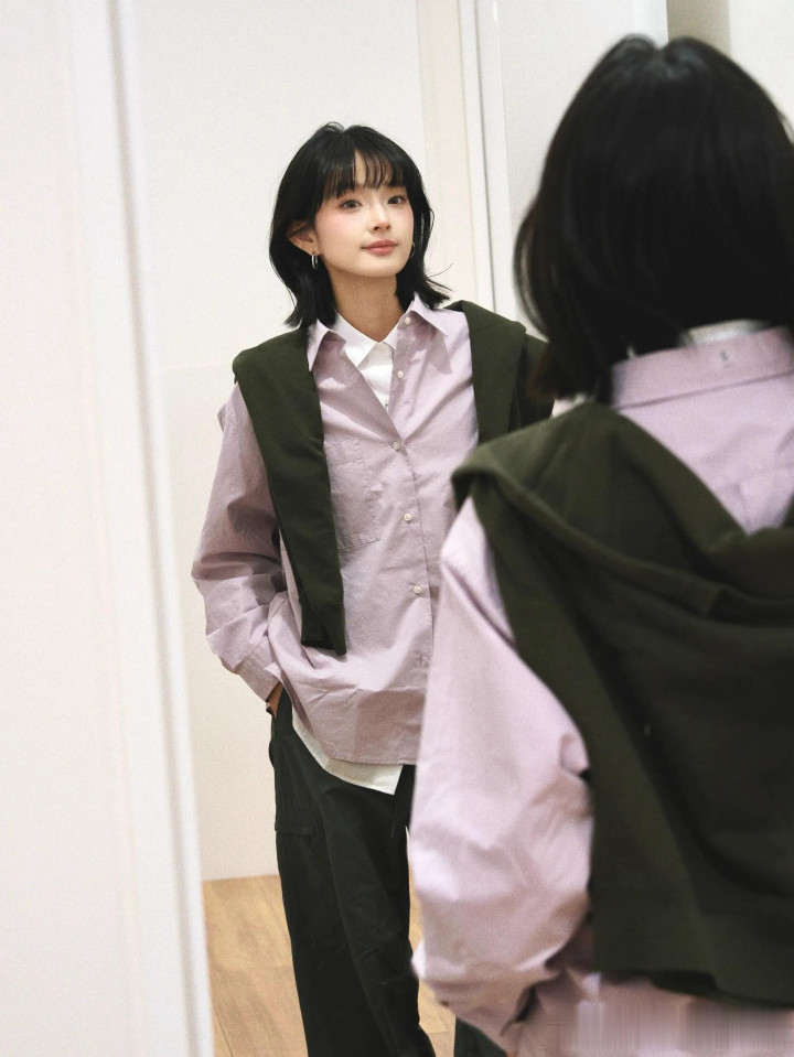 早春氛围浅紫色衬衫打底,尊龙橄榄绿外衣搭肩,下身选了一条垂坠感很好的工装裤,宽松但不垮,修饰腿型一绝~