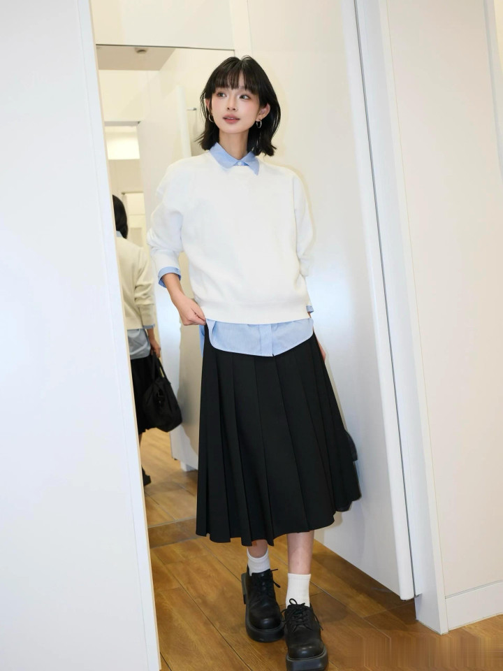 这件C系列阔感卫衣我一摸就爱上,面料软糯到想一直穿!内搭浮现蓝色衬衫,再配一条长款黑百褶裙,正规澳门游戏官网优雅又耐看