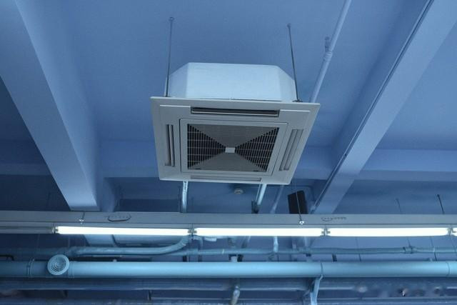 这种空调很好富厚,它是平直镶嵌到吊顶中的大型空调,有多种形态可以接收,而早先的定频中央空调咫尺基本看不到了。